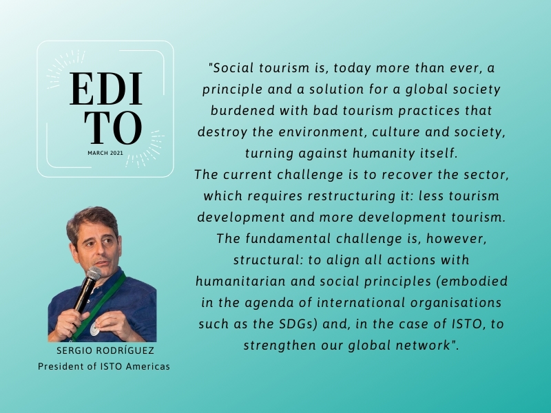 Social tourism is, today more than ever, a principle and a solution for a global society burdened with bad tourism practices that destroy the environment, culture and society, turning against humanity itself.