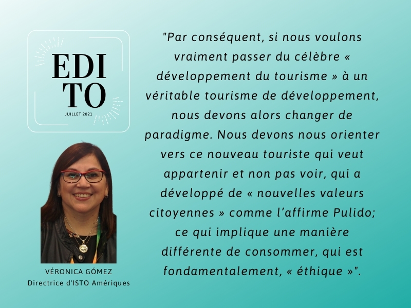 Beaucoup de choses ont été dites au cours de cette Semaine Internationale, et beaucoup de matériel est à consulter, mais dans cette ligne de pensée, je voudrais souligner certains aspects que Juan Ignacio Pulido, professeur d'Économie appliquée à l'Université de Jaén, a partagé avec nous lors de sa conférence. Il a dit que nous devons comprendre que ce que nous « vendons » finalement dans le tourisme c’est le « droit à la satisfaction future d'une illusion ». Il est donc nécessaire de générer ces expériences transformatrices, qui entraînent un développement personnel et impliquent une plus grande interaction sociale; des aspects totalement en adéquation avec notre Déclaration de Montréal Pour une vision humaniste et sociale du tourisme (1996). Par conséquent, si nous voulons vraiment passer du célèbre « développement du tourisme » à un véritable tourisme de développement, nous devons alors changer de paradigme. Nous devons nous orienter vers ce nouveau touriste qui veut appartenir et non pas voir, qui a développé de « nouvelles valeurs citoyennes » comme l’affirme Pulido; ce qui implique une manière différente de consommer, qui est fondamentalement, « éthique ».